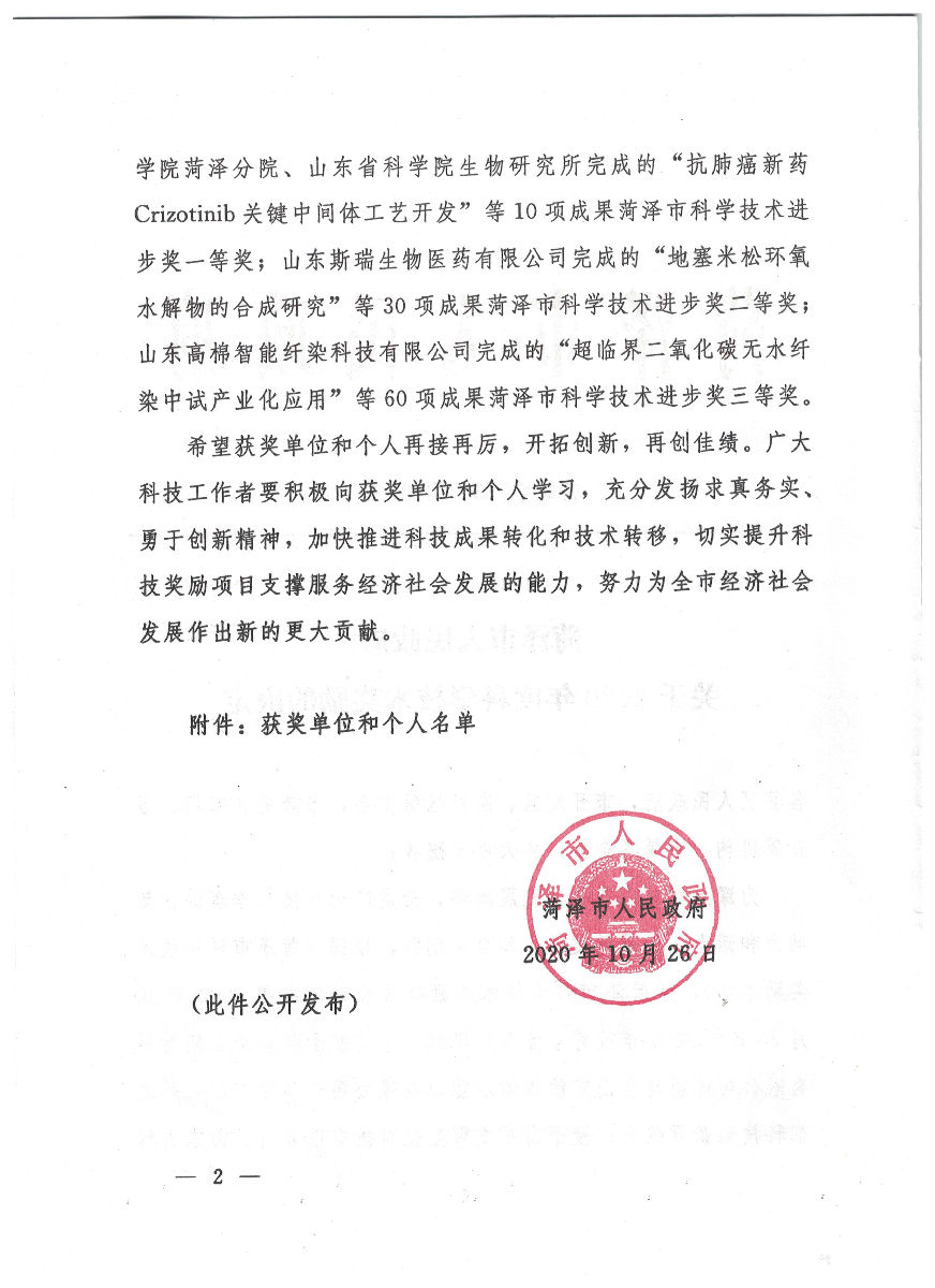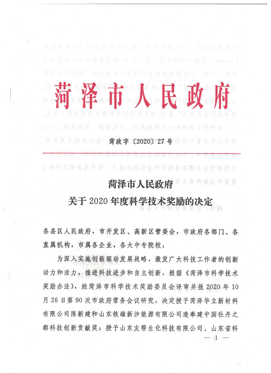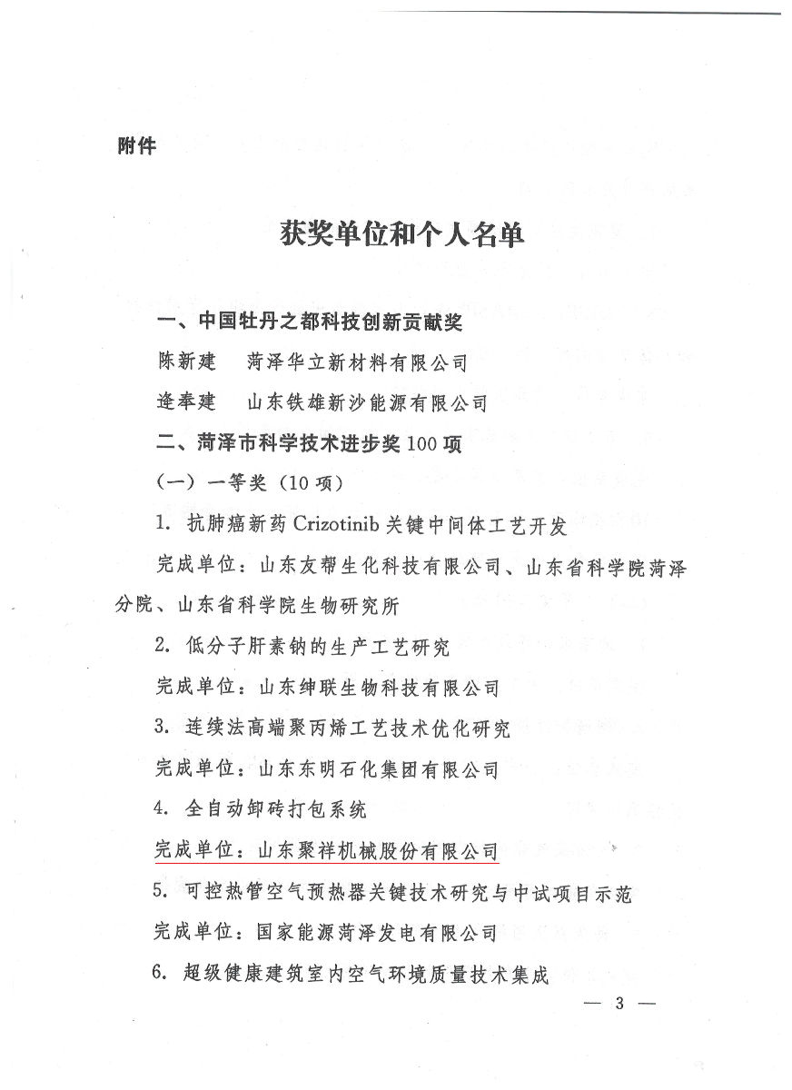 聚祥全自動卸磚打包機被評為菏澤市科學技術一等獎