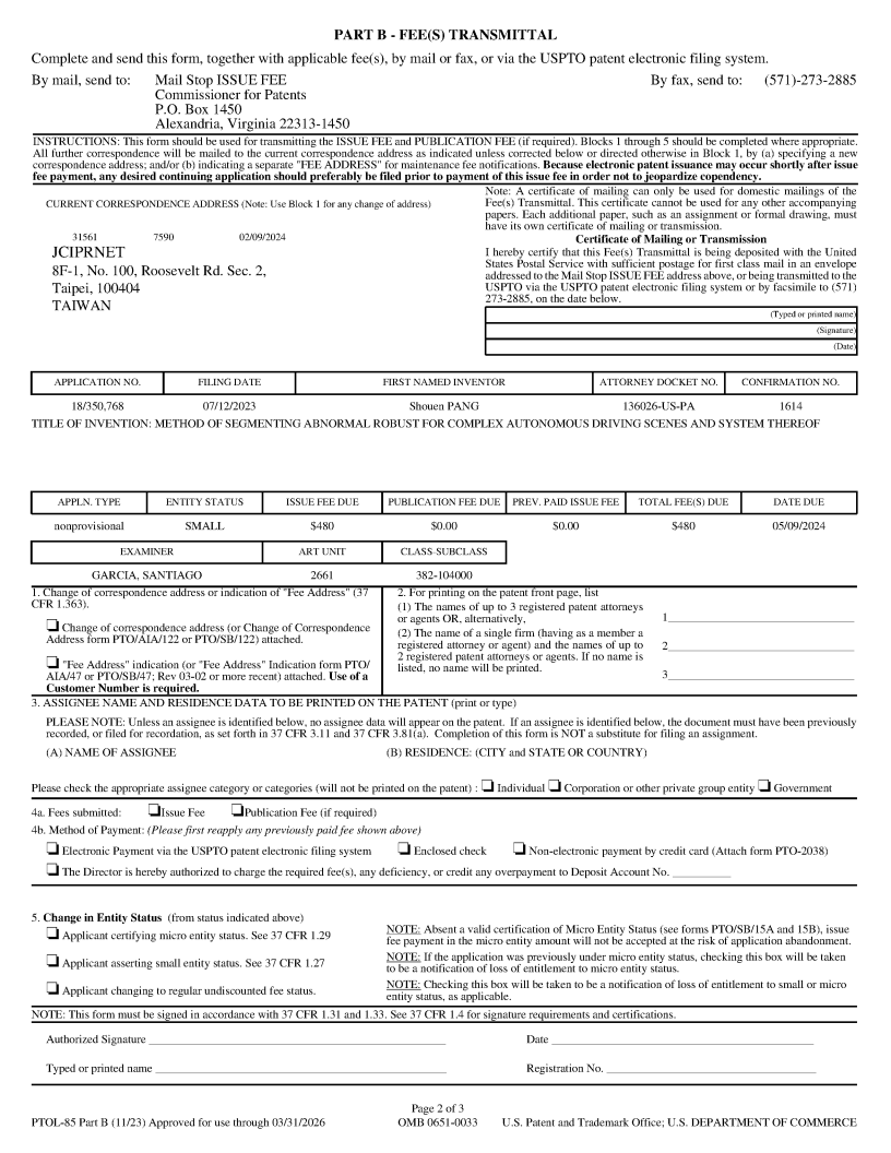 恭賀山東聚祥榮獲美國專利授權<一種面向復雜自動駕駛場景的異常魯棒分割方法與系統>